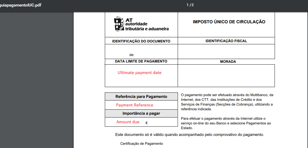 Pour payer la taxe vous devrez vous rendre à la trésorerie de votre bureau local des Finanças muni des documents de votre véhicule (voir notre fiche M/06F), de votre numéro fiscal et de vos documents personnels. (voir notre fiche P/01F) ou vous pouvez le faire en ligne via le portail Finanças (consultez plus bas pour les instructions).