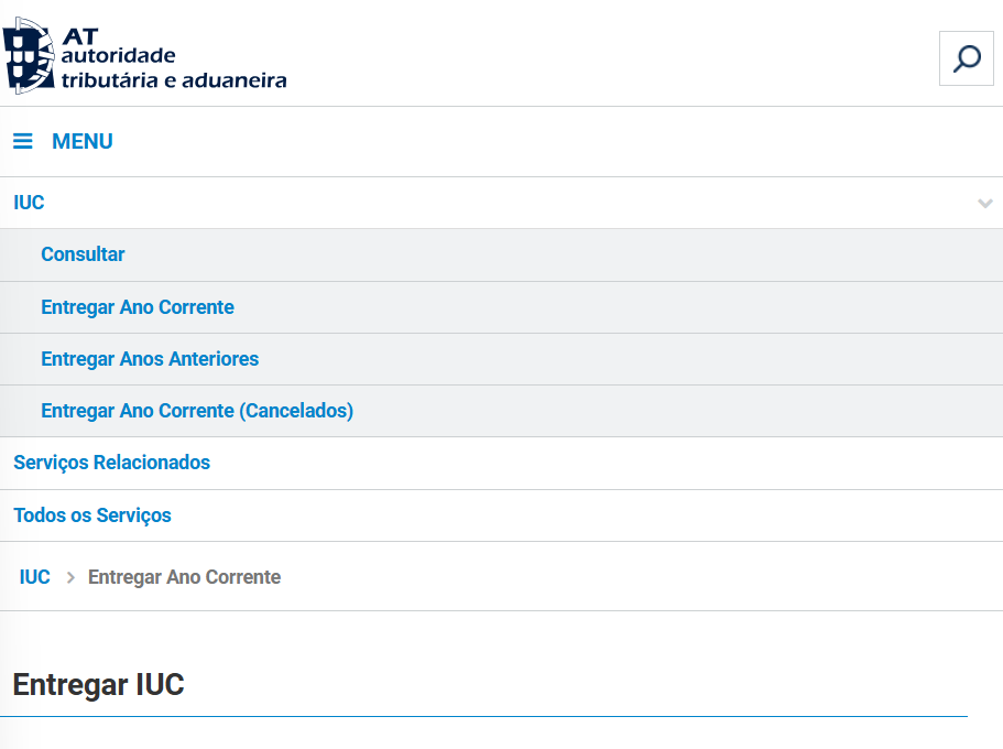 3 Choisissez ensuite l'option « IUC » Entregar Ano Corrente »