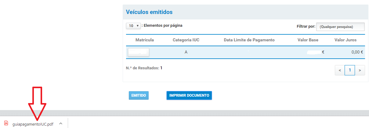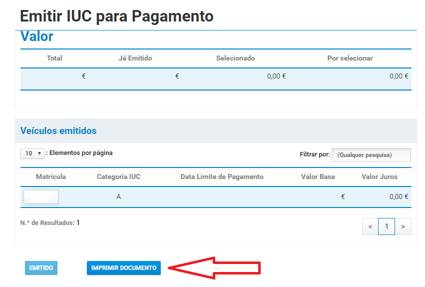 Paiement de la taxe sur les véhicules via le site Web des Finanças :